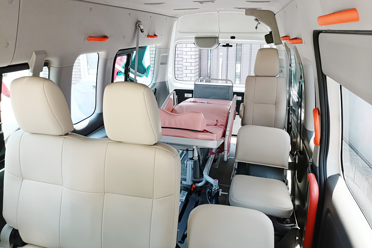 車いす2台、もしくはストレッチャー1台を載せられる車両をご用意。
